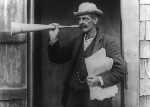 3. Градски известител – в средновековна Англия градският известител информирал населението за последните случили се събития, новини и всякаква релевантна информация, тъй като повечето хора не можели да четат. След като прочете дадена новина, известителят поставял бележка на вратата на местния хан. Оттам идва и днешното название на някои вестници – “The Post”.